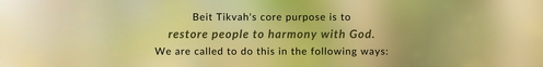 Yeshua commissioned us to make disciples of all nations, baptize them, and teach them to obey the Scriptures. (Matthew 28:16-20) Accepting Yeshua as Savior is enough for salvation, but we also desire to see people grow in their faith and have a great impact in the Kingdom of God. (Ephesians 2:8-9) Beit Tikvah seeks to disciple people to obey the commandments of Yeshua and to embrace all of Scripture.